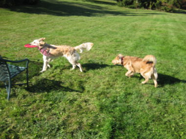7:30: Groggy Winemaker Son arrives. Exchange pleasantries and play fetch with “grand-dogs”.