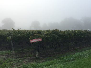 Soaking rain, followed by consecutive days of dense fog and stagnant air combined to put our nearly-ripe Syrah on the precipice of breakdown. I remember taking pictures of the pea soup fog and the mushrooms sprouting out of the vine trunks, just to have record of how dire the situation was. Beset by an unsettling feeling, I began to notice that the skins on a few, then many berries were starting to lose their integrity and become discoloured and mouldy. It was evident that some kind of fungal pathogen, likely Botrytis, was taking over and there was little time to act.